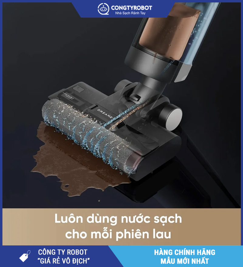 | Tính năng nổi bật | Lau bằng nước sạch, tự làm sạch cuộn, màn hình LED |