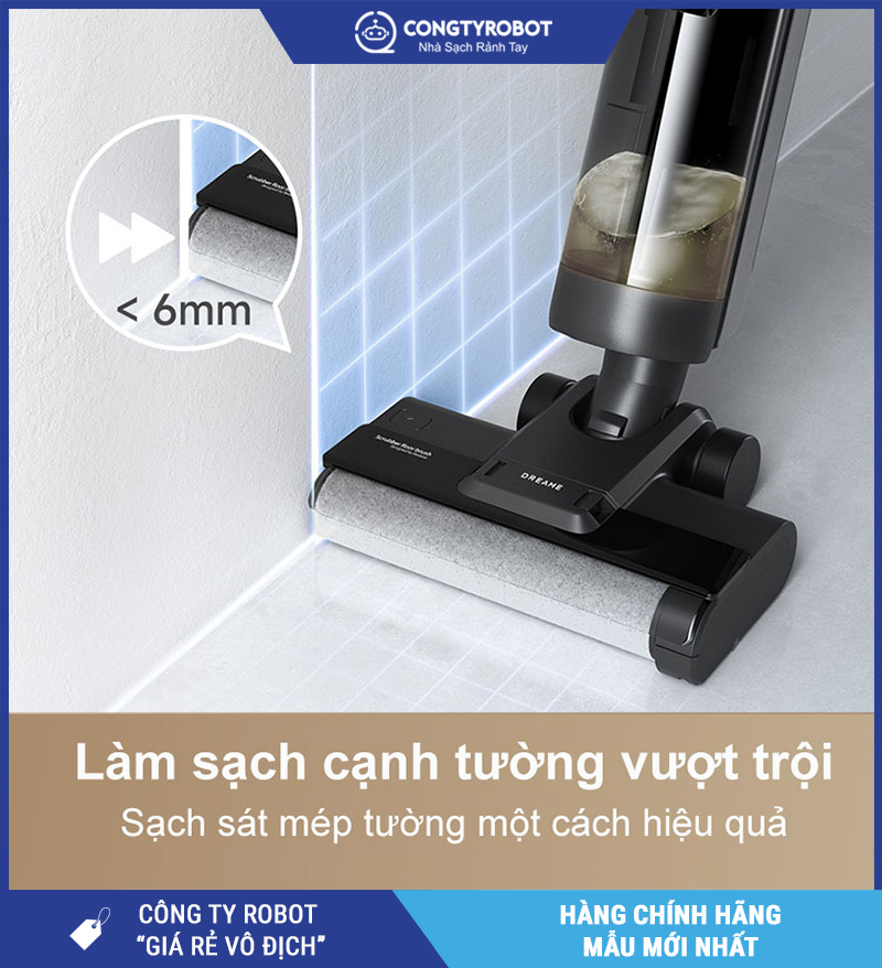 Không giống các dòng máy hút lau truyền thống thường để lại bụi bẩn ở mép tường, Dreame G10 sở hữu thiết kế tràn viền giúp: