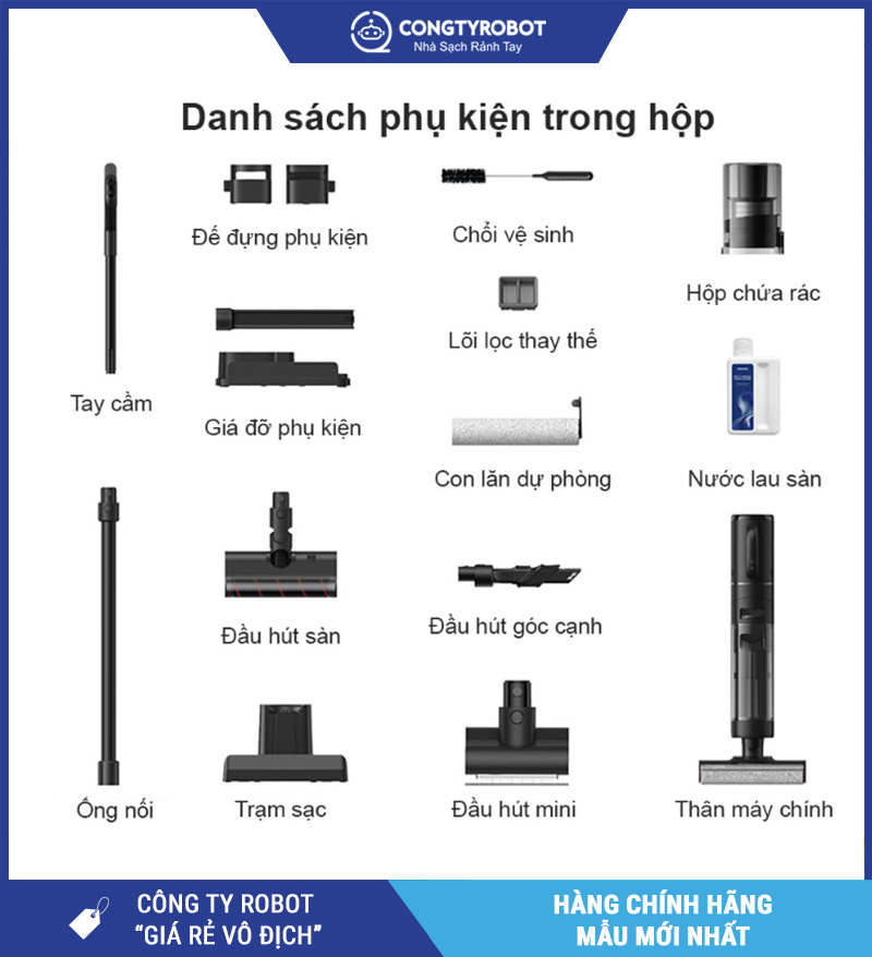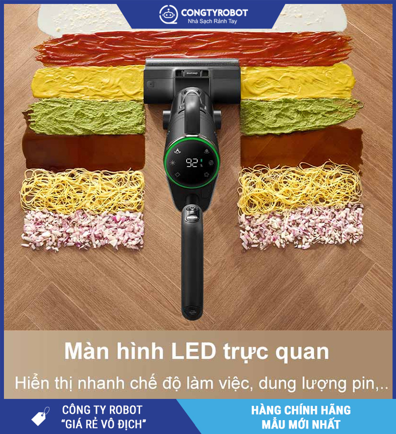 | Tính năng nổi bật | 4-in-1 hút & lau, tự làm sạch & sấy khô, cảm biến bụi, màn hình LED, giọng nói hướng dẫn |