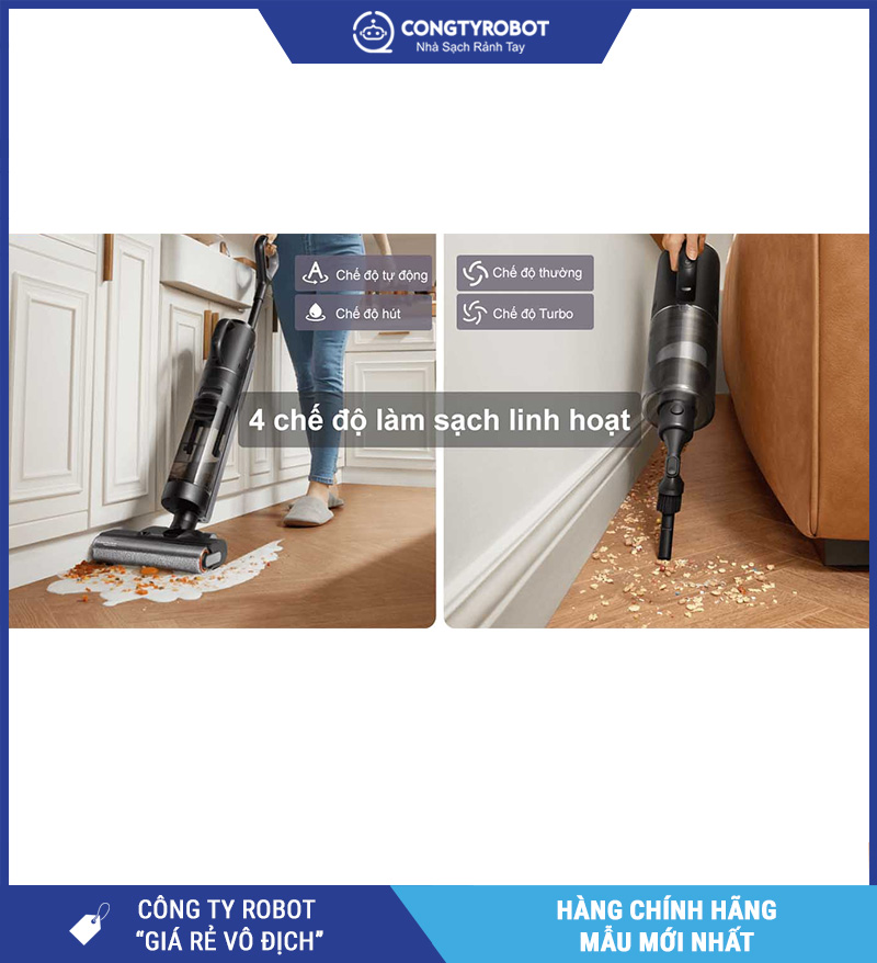 Điều này giúp bạn không cần sử dụng chổi, cây lau nhà hay máy hút bụi riêng lẻ nữa. Với Dreame H12 Dual, bạn vừa hút – vừa lau – vừa vệ sinh máy, tiết kiệm cả thời gian lẫn công đoạn.