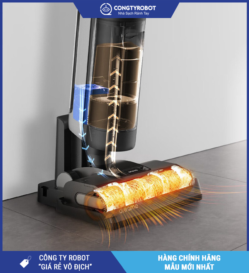 Sau mỗi lần lau nhà, cuộn lăn sẽ bẩn, ẩm và dễ gây mùi nếu không vệ sinh ngay. Dreame H12 Pro được trang bị chức năng tự làm sạch con lăn và sấy khô bằng khí nóng, giúp: