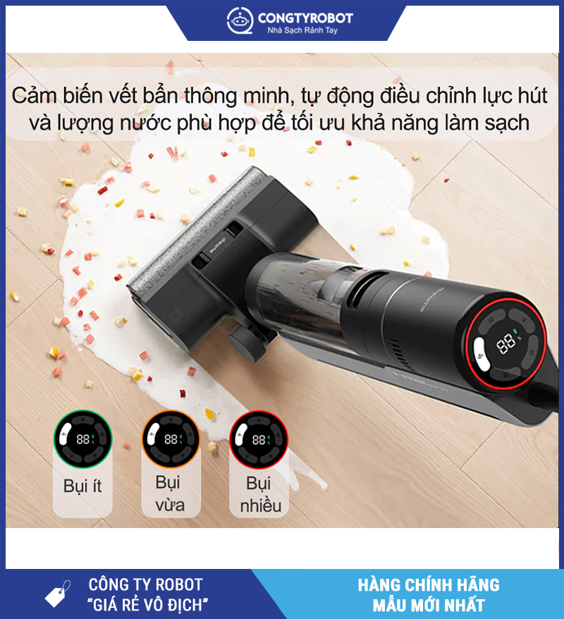 Tự động điều chỉnh lực hút & lượng nước lau để làm sạch tối ưu