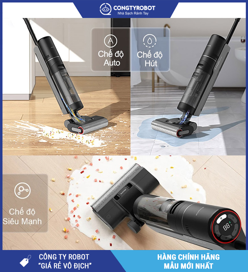 Tùy theo mặt sàn và tình huống, người dùng dễ dàng chọn chế độ phù hợp để dọn nhà nhanh chóng – tiết kiệm thời gian – hiệu quả cao.