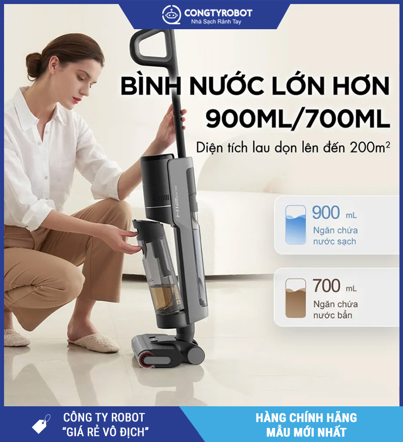 Nhờ đó, chỉ với 1 lần sạc – 1 lần đổ nước, bạn có thể dọn dẹp cả căn hộ từ 70–100m² một cách thoải mái mà không bị ngắt quãng.