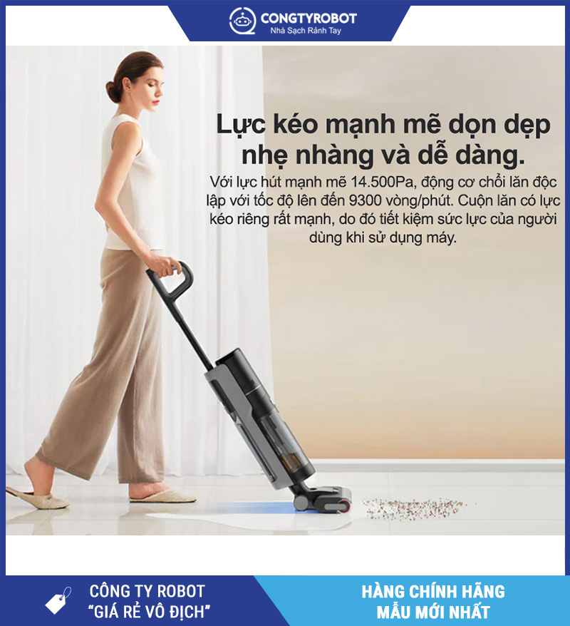 | Lực hút | 14.500 Pa – làm sạch hiệu quả bụi bẩn, nước đọng |