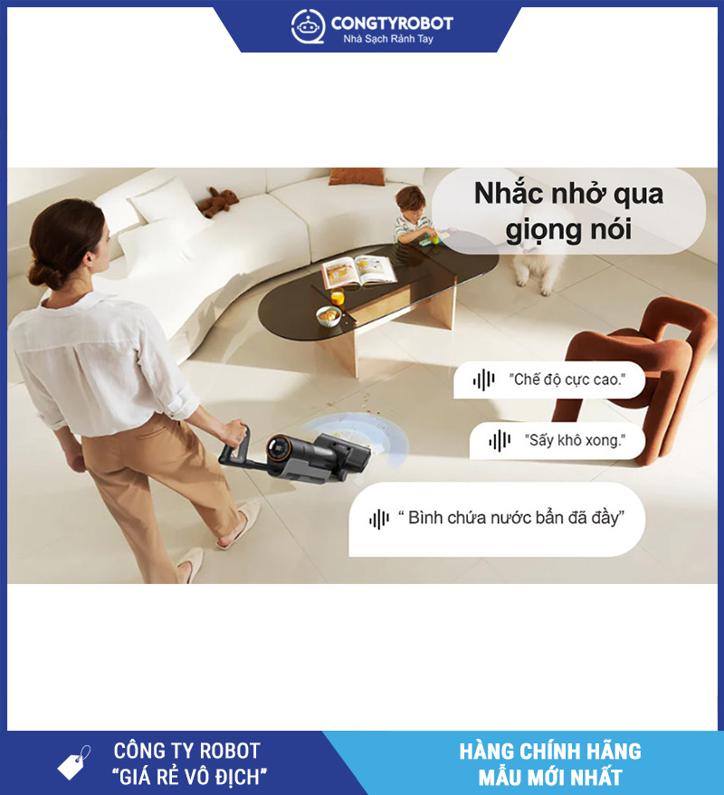 Không cần nhìn màn hình hay đọc hướng dẫn phức tạp, Dreame H12 Pro tích hợp trợ lý giọng nói tiếng Việt, giúp bạn: