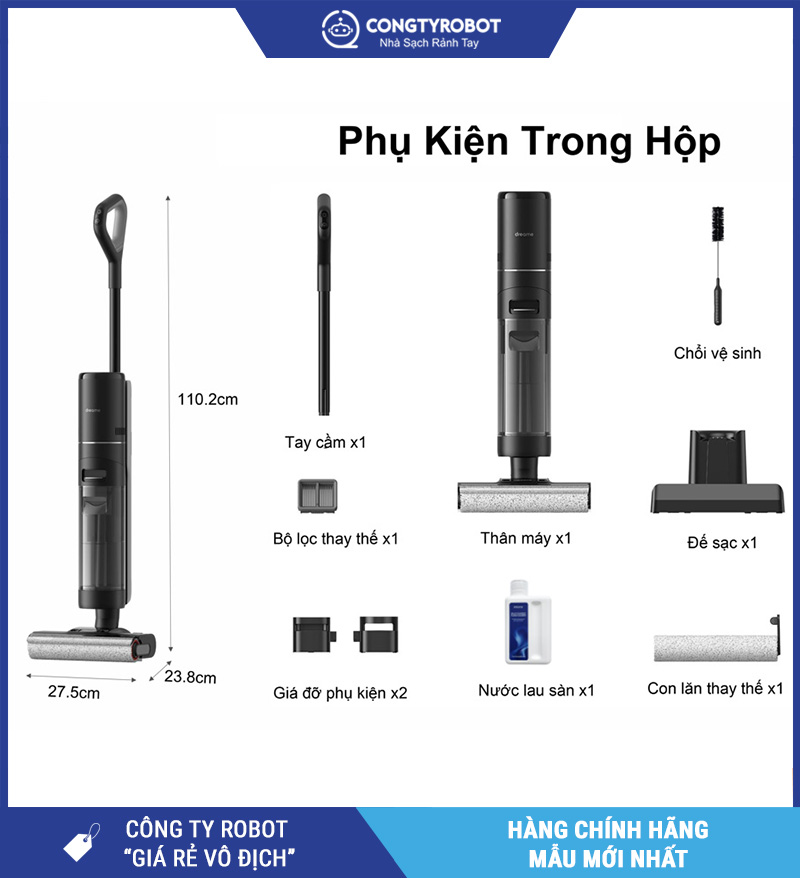 | Tính năng nổi bật | Cuộn lăn tràn viền – Tự giặt/sấy giẻ – Cảm biến vết bẩn – Màn hình OLED – Trợ lý giọng nói Tiếng Việt |