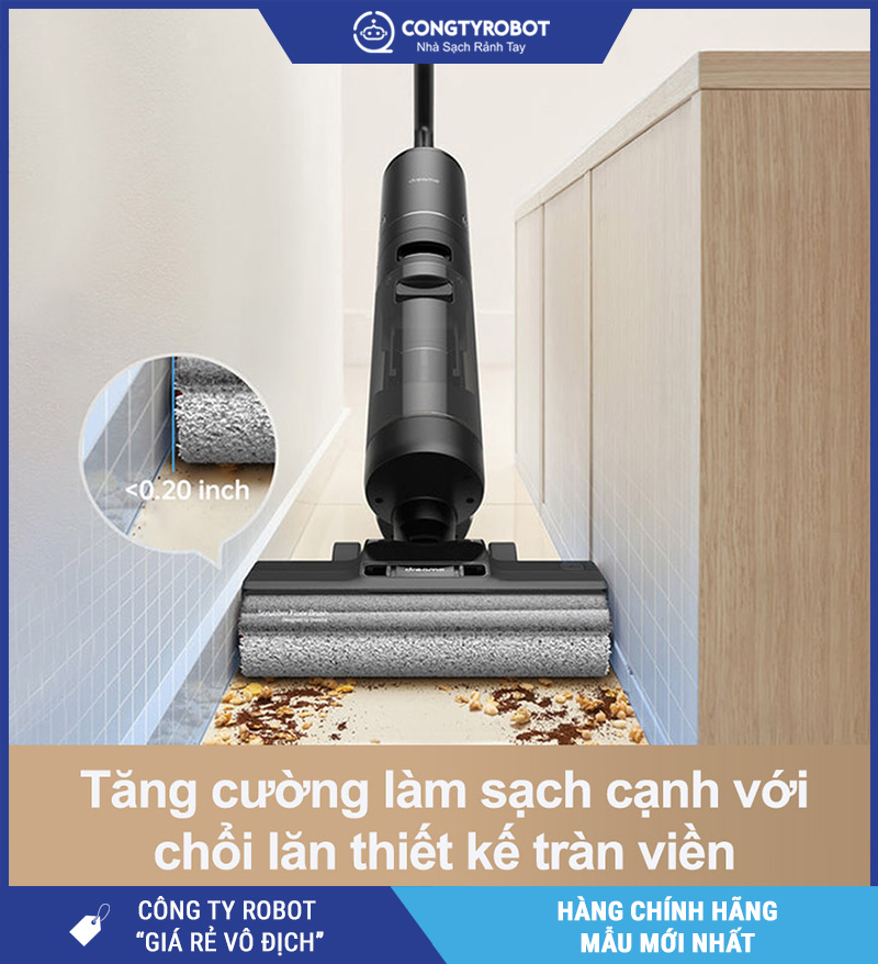 Dreame H12 Pro khắc phục triệt để nhờ cuộn lăn tràn viền thiết kế đặc biệt, giúp: