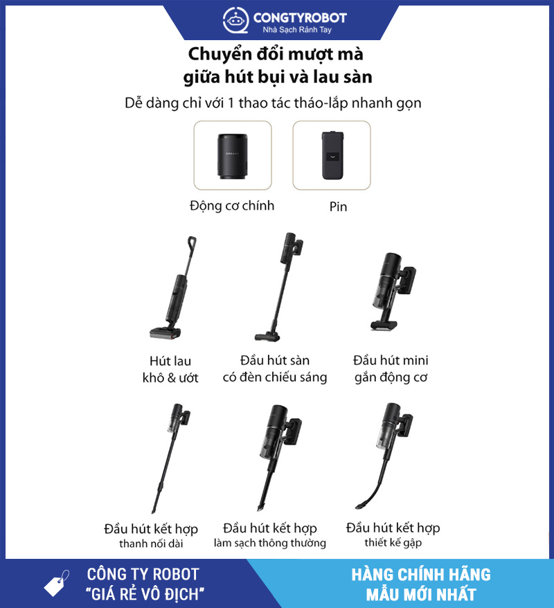 Hút bụi – lau khô – lau ướt – hút cầm tay – tự vệ sinh – sấy nóng