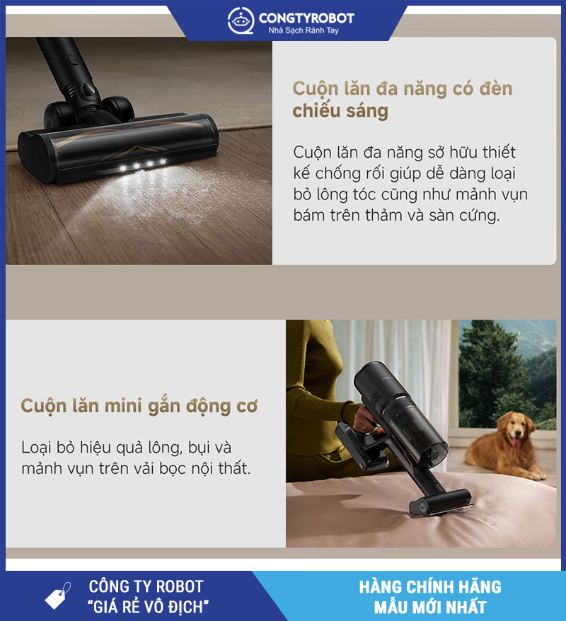 Đây là tính năng cực kỳ hữu ích với nhà có phụ nữ tóc dài hoặc nuôi thú cưng như chó, mèo – không còn lo tóc vướng làm giảm hiệu quả hút bụi nữa!