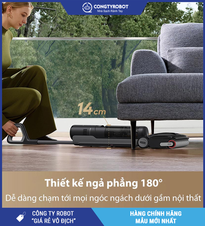 Linh hoạt làm sạch gầm thấp với thiết kế ngả phẳng 180°