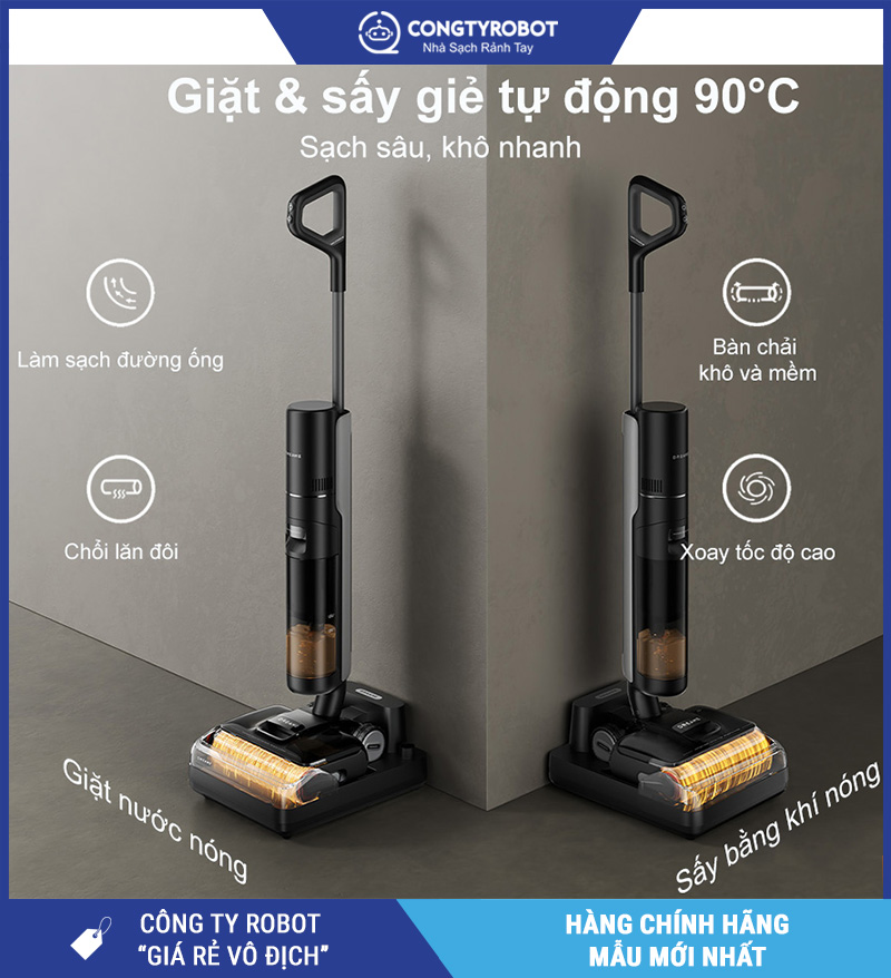 | Tính năng nổi bật | Tự giặt & sấy nóng giẻ lau ở 90°C – chống rối tóc tự động |