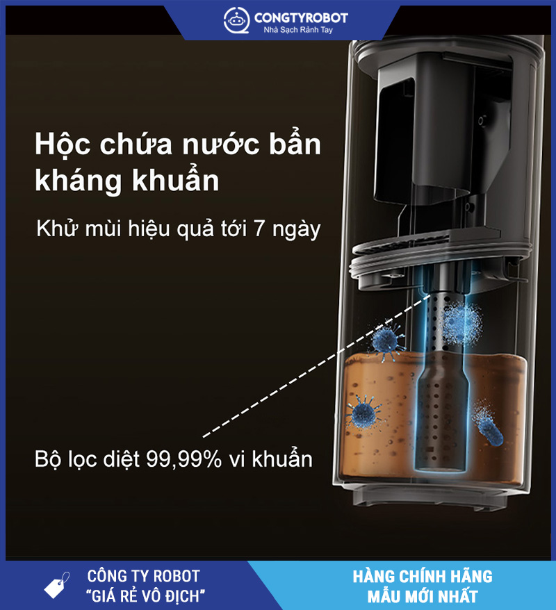 Khác với các dòng máy truyền thống dễ ám mùi hôi sau vài ngày sử dụng, Dreame H13 FlexReach sử dụng hộc chứa nước bẩn có lớp phủ kháng khuẩn, giúp: