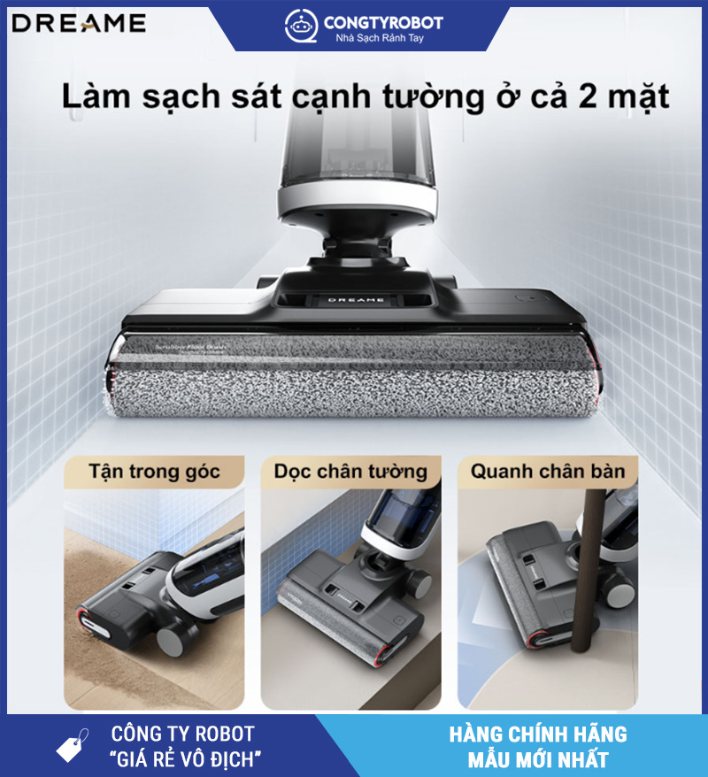 Một trong những điểm nâng cấp đáng giá trên Dreame H14 là thiết kế con lăn tràn viền 2 cạnh, cho phép: