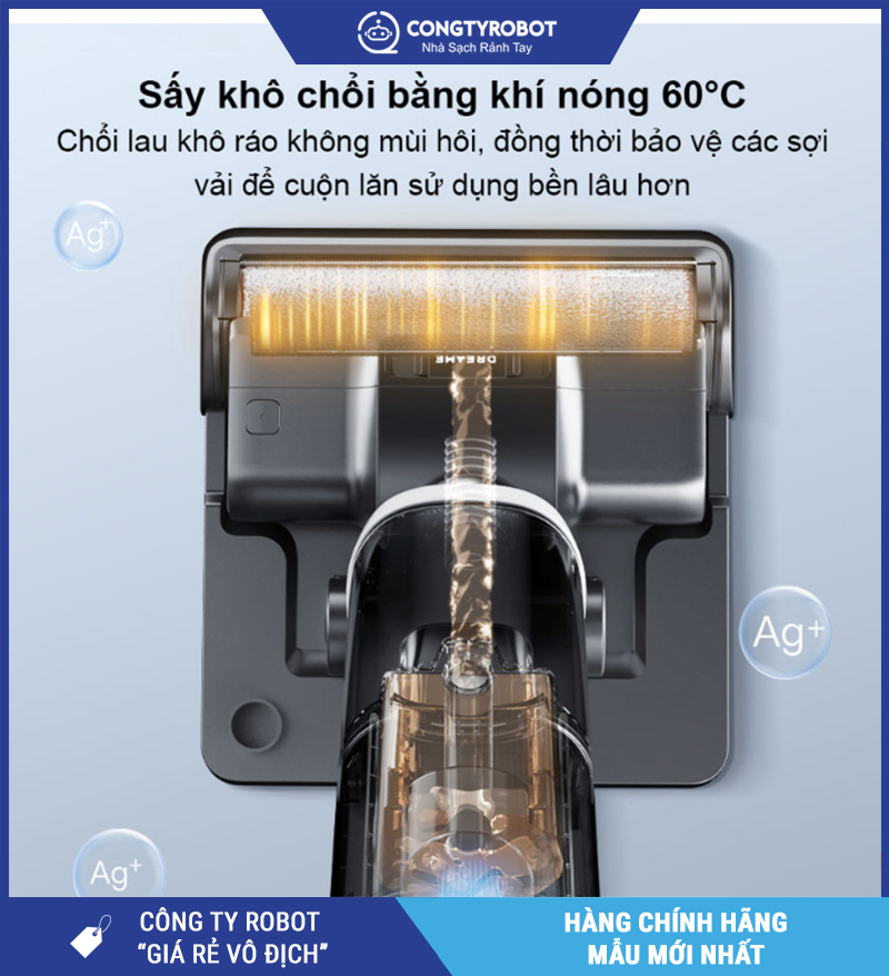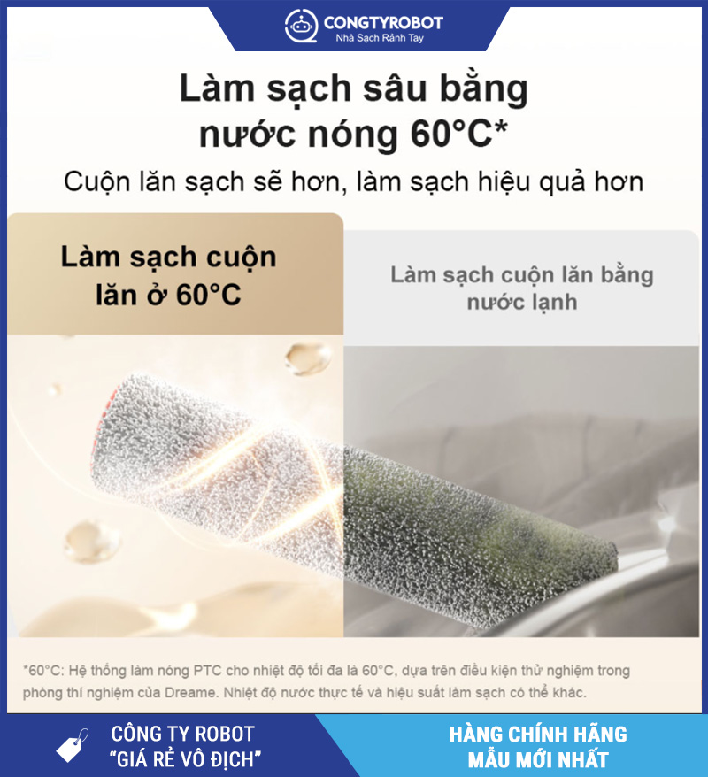 Không cần tháo rời và giặt tay, Dreame H14 được trang bị chức năng tự làm sạch cuộn lăn bằng nước nóng 60°C kết hợp chế độ sấy khô nhanh, giúp:
