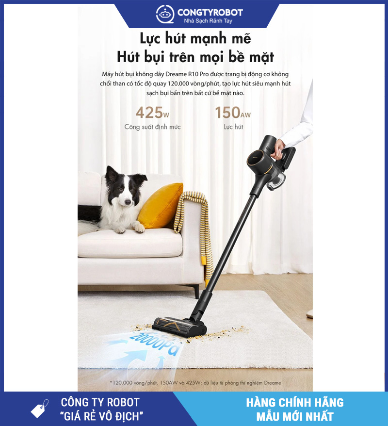 Hiệu năng ổn định, mạnh mẽ giúp Dreame R10 Pro đáp ứng tốt nhu cầu làm sạch toàn diện cho căn hộ, nhà phố, gia đình có trẻ nhỏ hoặc nuôi thú cưng.