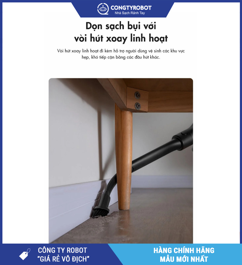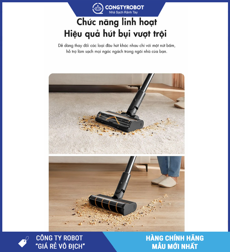 Nhờ đó, người dùng có thể tập trung vào thao tác điều khiển đầu hút và dọn dẹp kỹ hơn, nhanh hơn – mang lại trải nghiệm vệ sinh nhà cửa nhẹ nhàng, thoải mái.