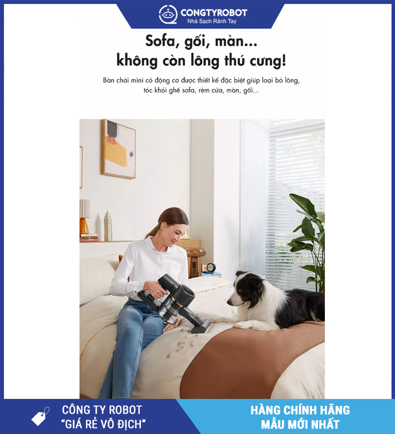 Hút sạch bụi mịn, lông thú, tóc rụng, mảnh vụn trên sàn gỗ, sàn gạch, thảm hoặc ghế sofa.