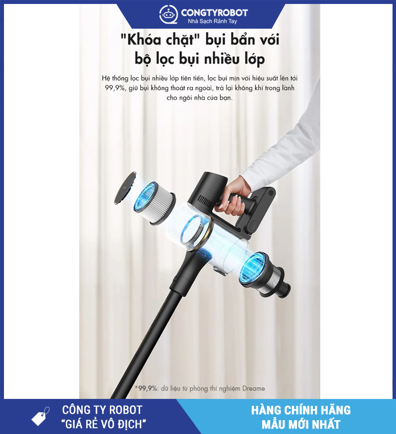 Nhờ hệ thống lọc chất lượng, Dreame R10 Pro không chỉ làm sạch bề mặt mà còn góp phần cải thiện chất lượng không khí trong nhà.