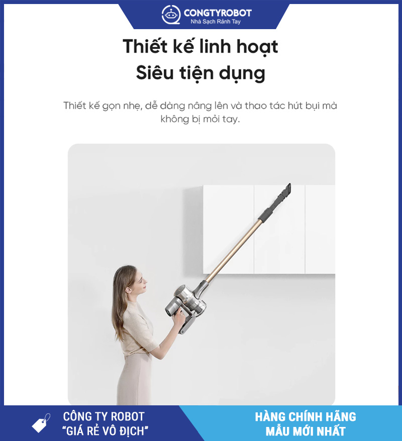 Thiết kế không dây linh hoạt, dễ dàng di chuyển khắp mọi không gian trong nhà mà không bị vướng víu.