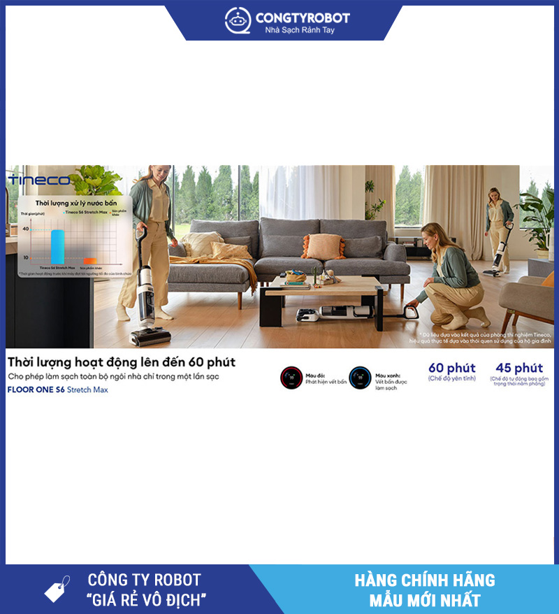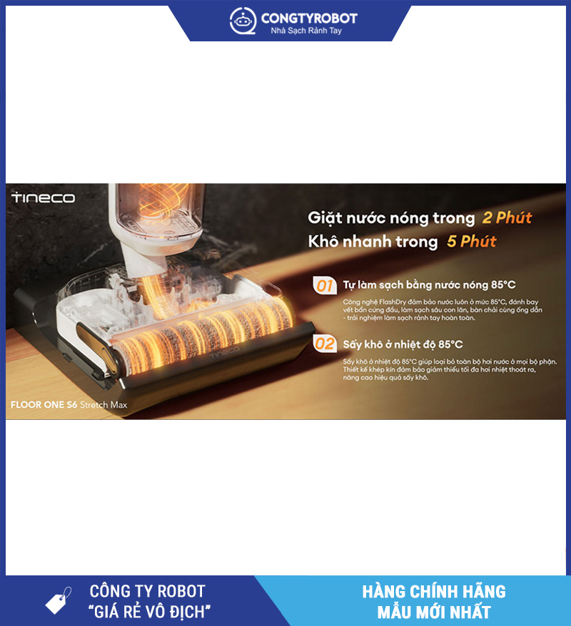 Với loạt công nghệ làm sạch tiên tiến, thiết kế tối ưu và khả năng vận hành êm ái, Tineco Floor One S6 Stretch Max không chỉ là một chiếc máy hút bụi lau nhà thông minh, mà còn là trợ thủ đắc lực giúp bạn chăm sóc tổ ấm gọn gàng, sạch khuẩn – tiết kiệm thời gian.