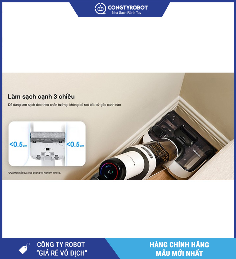 Nhiều máy hút lau hiện nay gặp điểm yếu là không thể lau sát tường hoặc góc mép, khiến người dùng phải lau lại bằng tay. Với thiết kế con lăn tràn viền, Tineco S6 Stretch Pro giúp: