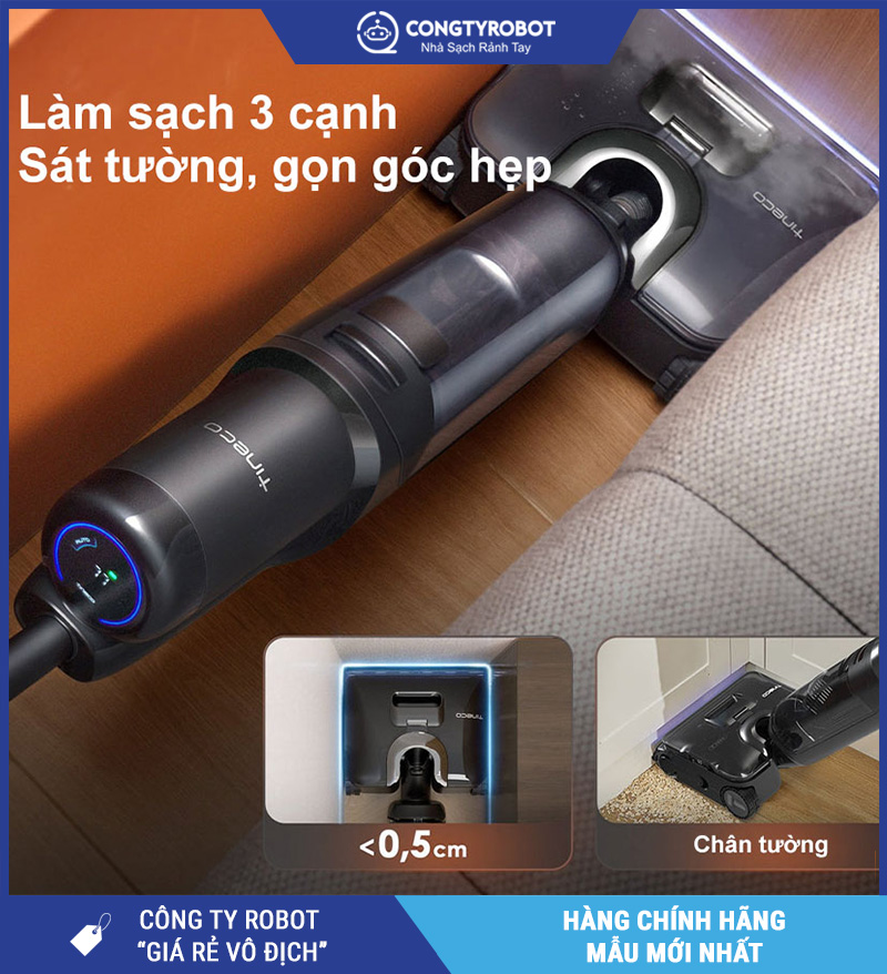 Một trong những điểm khác biệt nổi bật của Tineco S7 Stretch Steam so với nhiều đối thủ là khả năng làm sạch sát 3 cạnh: