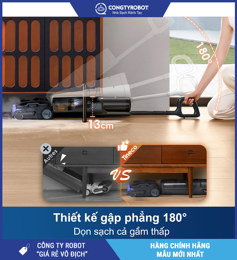 Thiết kế gập phẳng 180°, làm sạch dễ dàng gầm nội thất