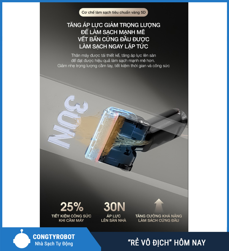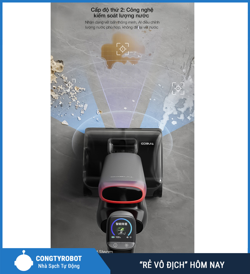 Phân tích độ bẩn trên sàn theo thời gian thực và điều chỉnh lực hút, lượng nước.