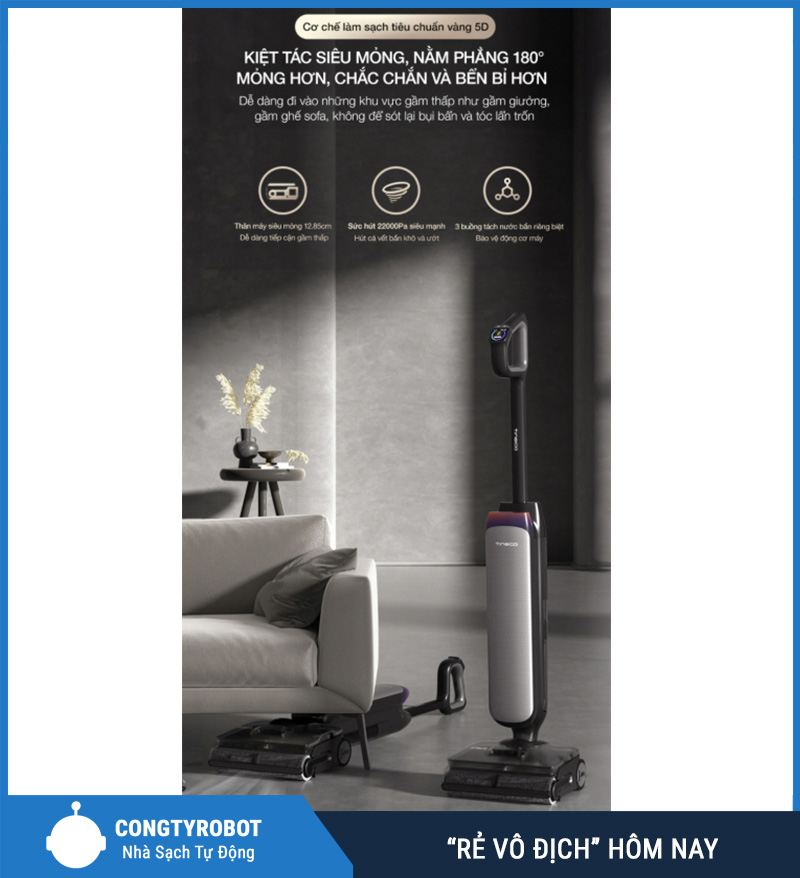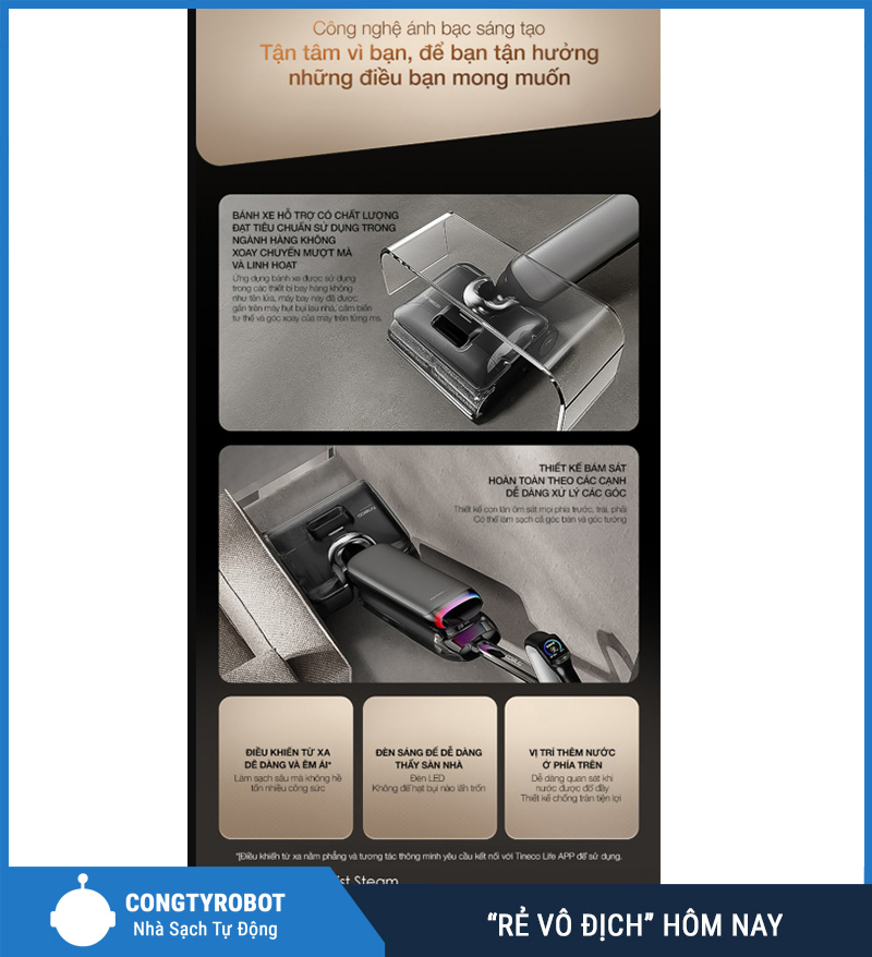 | Kết nối thông minh | Có – Kết nối app Tineco cho hướng dẫn và báo cáo dọn dẹp |