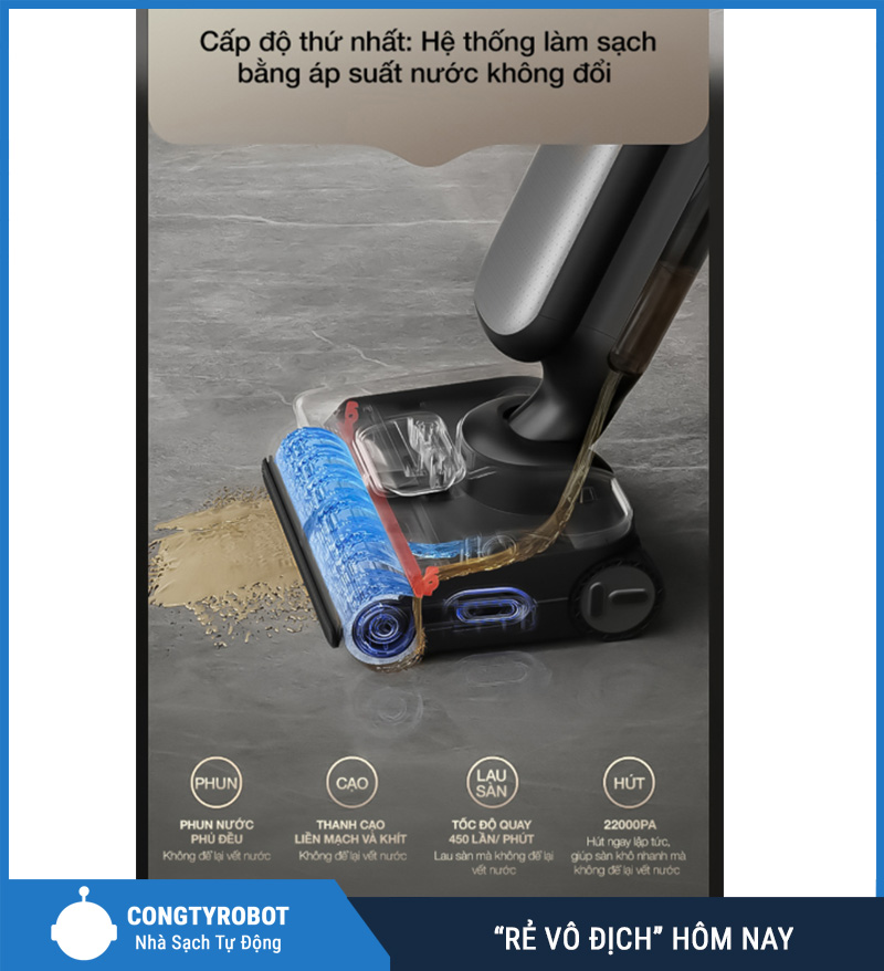 | Hệ thống lau | Con lăn ướt tự làm sạch, điều chỉnh nước thông minh |