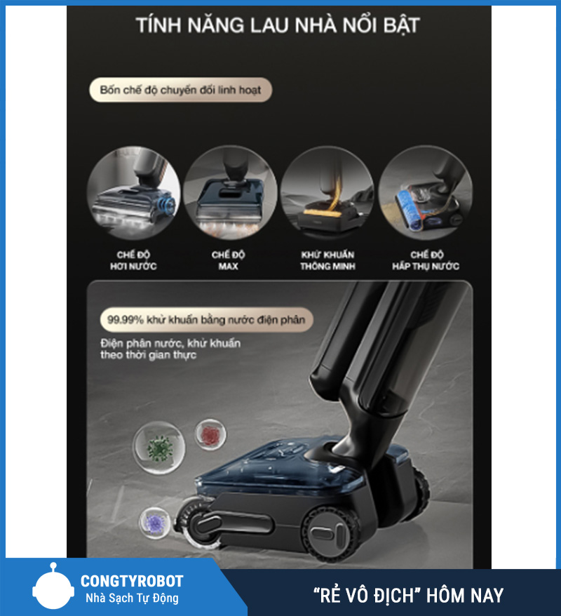 | Chức năng chính | Hút bụi – Lau sàn – Phun hơi nước nóng |