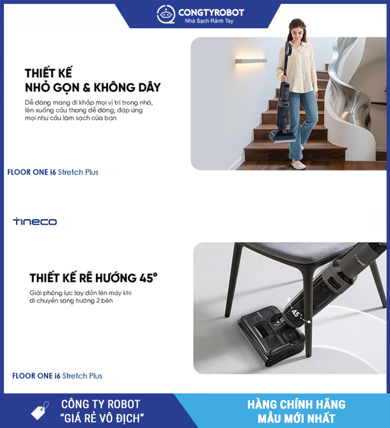 Tổng thể, thiết kế của i6 Stretch Plus không chỉ đẹp mà còn phục vụ đúng nhu cầu làm sạch nhanh – gọn – hiệu quả cho mọi gia đình Việt hiện đại.