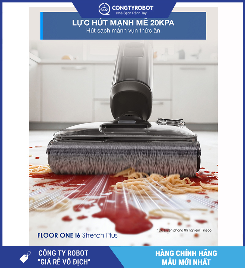Không giống như các dòng máy hút bụi truyền thống chỉ hút được bụi khô, Tineco i6 Stretch Plus được trang bị lực hút lên đến 20.000Pa, đủ mạnh để xử lý: