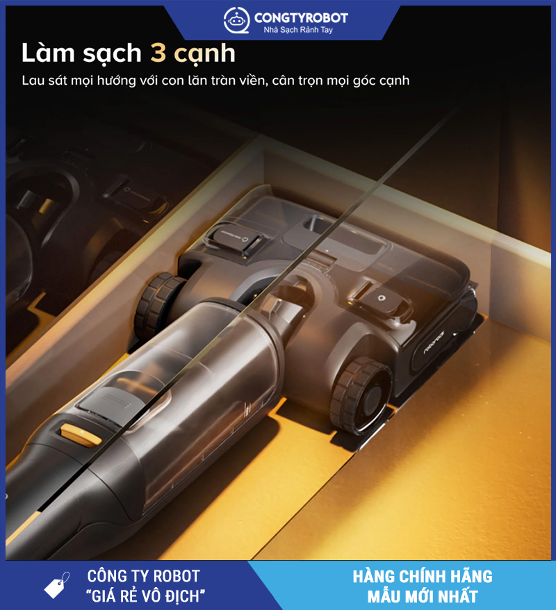 Làm sạch mép tường ở 2 bên + cạnh phía trước, tiếp cận các khu vực sát tường, góc vuông hẹp