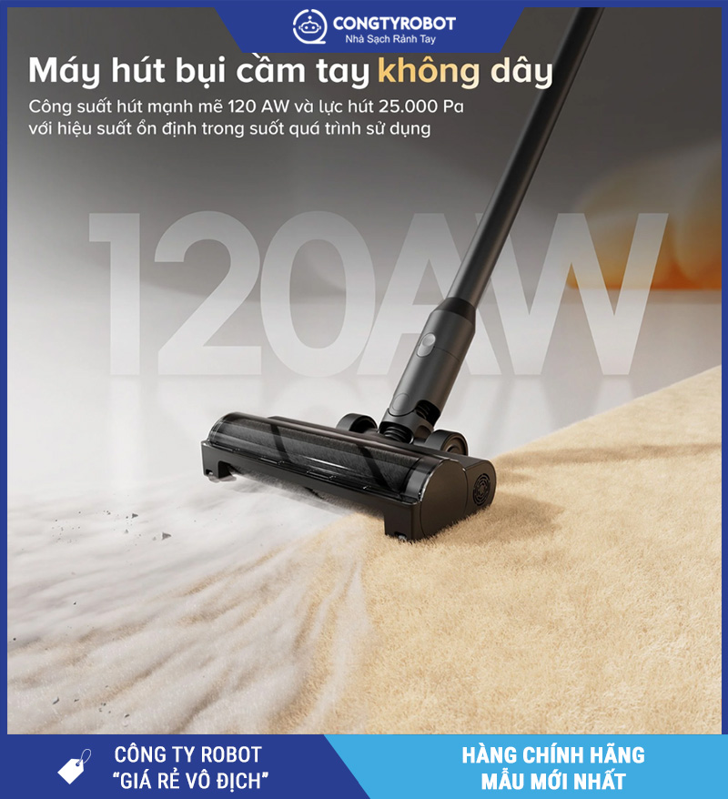 | Lực hút máy hút bụi cầm tay | 25.000Pa – Dọn dẹp mạnh mẽ mọi bề mặt |