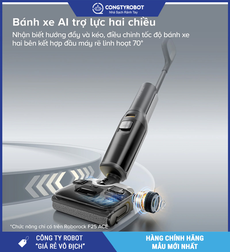 Bạn thường mệt vì đẩy máy lau nhà nặng nề? Với Roborock F25 Ace, mọi thứ trở nên nhẹ nhàng nhờ hệ thống bánh xe trợ lực SlideTech – một công nghệ chỉ có ở các dòng cao cấp của Roborock.
