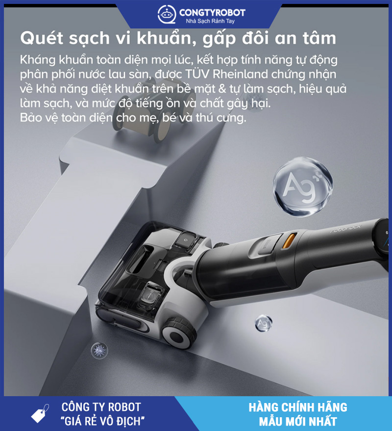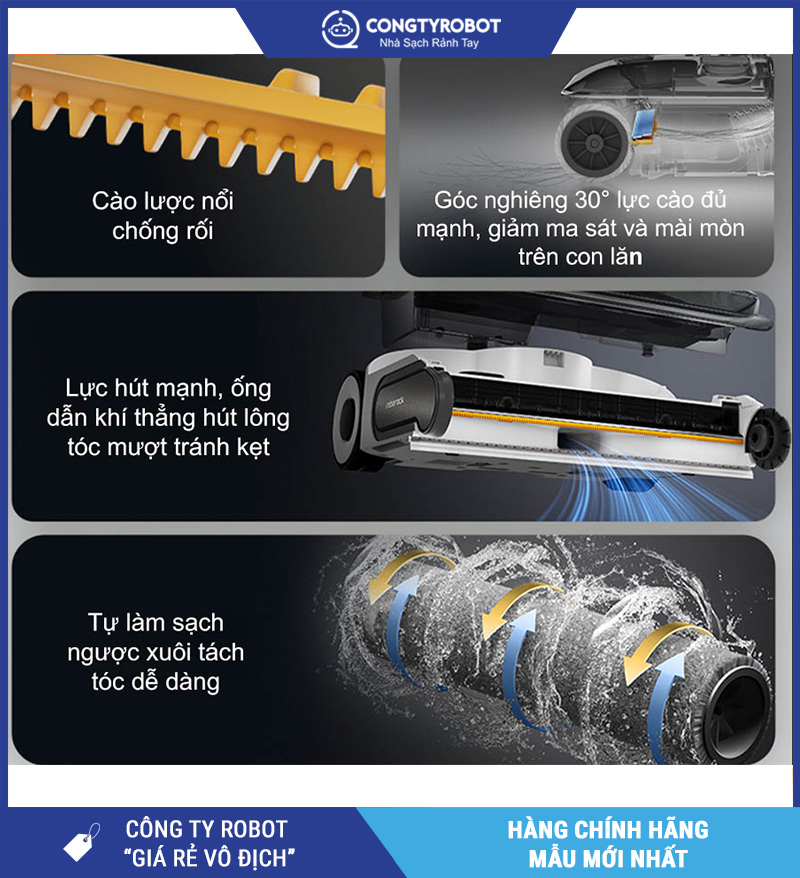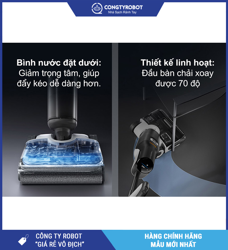 - Hút – lau – tự giặt – sấy khô – kết nối app trong một thiết bị