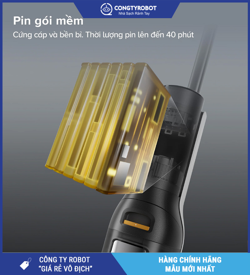 Khác biệt nổi bật của Roborock F25 là việc sử dụng pin gói mềm Lithium 4000mAh, cho hiệu năng vượt trội: