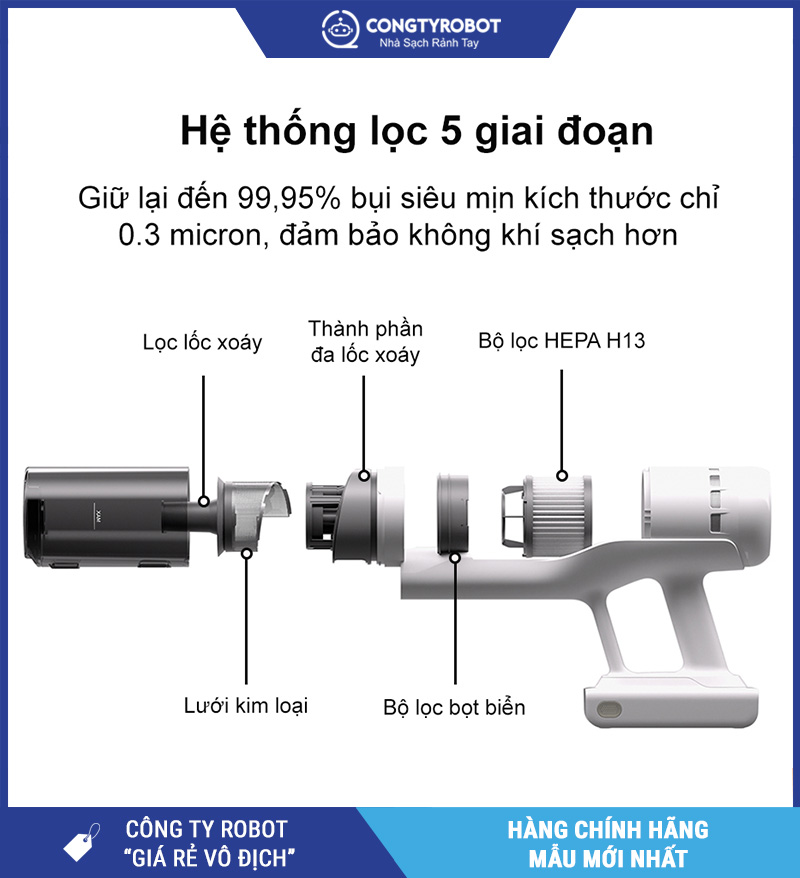 | Hệ thống lọc | 5 tầng – lọc sạch đến 99.95% bụi siêu mịn |