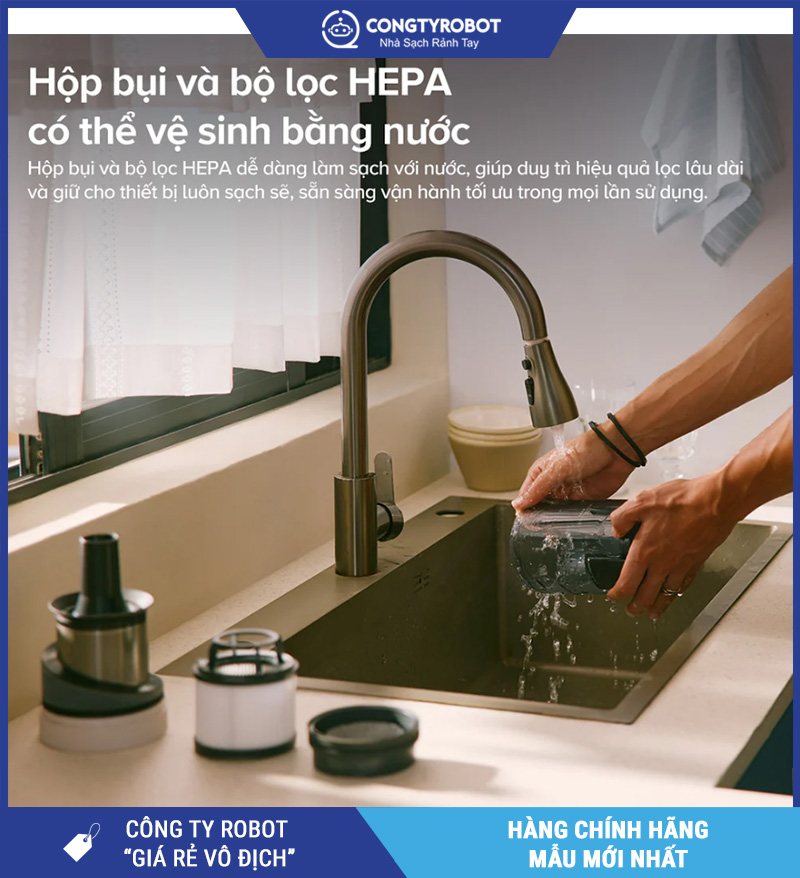 Hộp bụi và bộ lọc HEPA dễ dàng vệ sinh