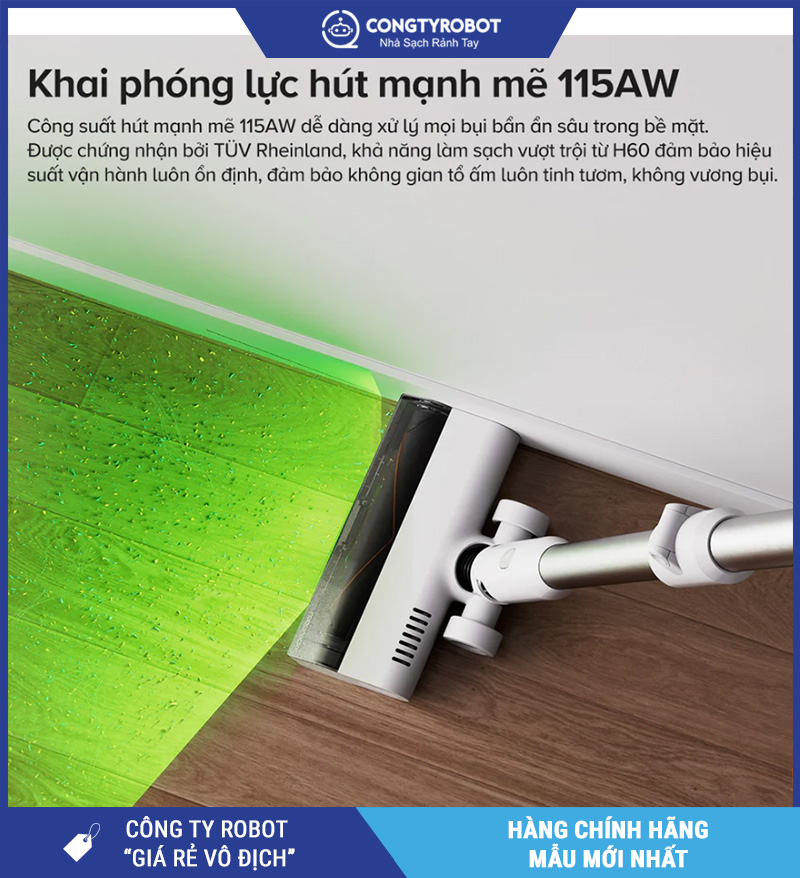 Lực hút mạnh mẽ 115AW cho khả năng làm sạch vượt trội