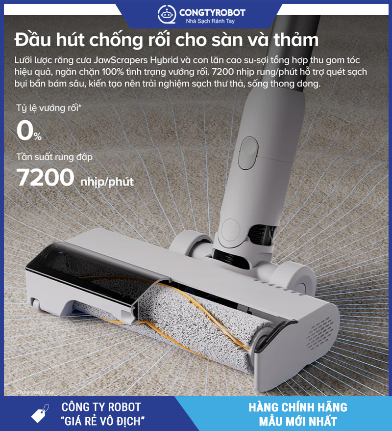 Làm sạch hiệu quả trên sàn và thảm nhờ đầu hút chống rối