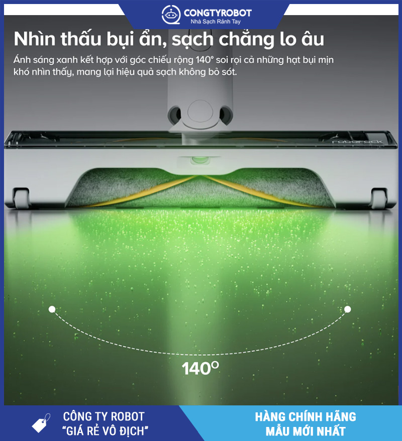 Một điểm thông minh mà người dùng đánh giá cao trên Roborock H60 chính là đèn LED ánh sáng xanh được tích hợp trực tiếp trên đầu hút. Ánh sáng này có khả năng phát hiện bụi mịn – bụi ẩn giấu trong các khe kẽ, góc tối, gầm tủ, gầm giường – những nơi mắt thường khó quan sát được.
