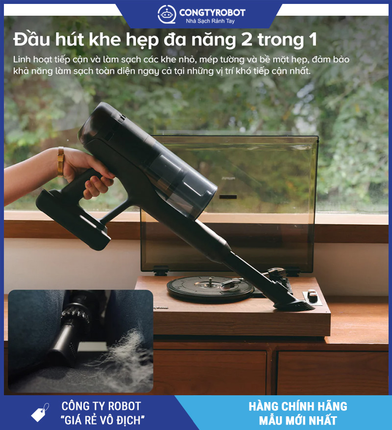 Đầu hút đa năng, kết hợp hút + chổi cho khu vực nhiều bụi cứng đầu.
