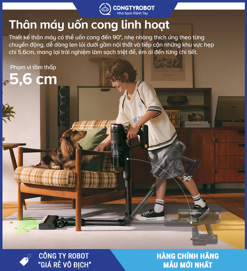 Dễ dàng tiếp cận những khu vực khó vệ sinh như: dưới gầm giường, gầm sofa, kệ thấp…