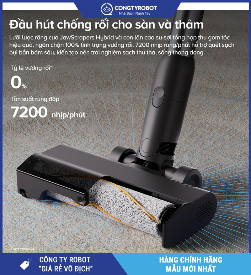 Một trong những nỗi phiền toái lớn khi dùng máy hút bụi là tóc và lông thú dễ quấn vào chổi, khiến bạn phải thường xuyên tháo ra vệ sinh. Với Roborock H60 Ultra, vấn đề này gần như được loại bỏ hoàn toàn nhờ: