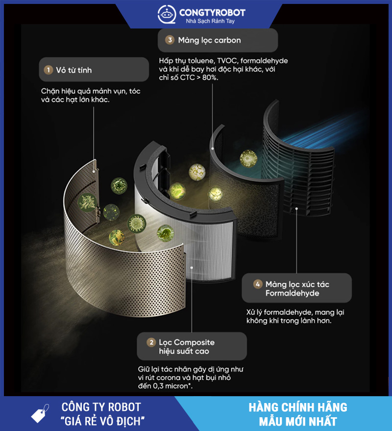 Bộ lọc 4 lớp tối ưu, loại bỏ bụi mịn và vi khuẩn