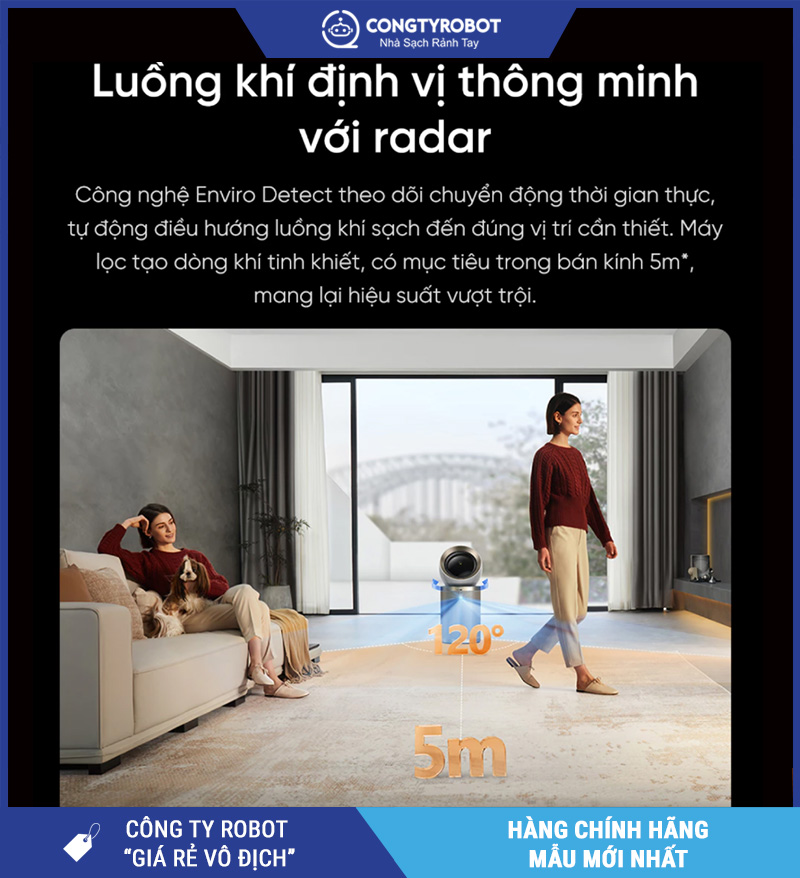 Ví dụ: Bạn ngồi sofa xem TV → máy ưu tiên hướng gió sạch về khu sofa thay vì thổi ra giữa phòng.