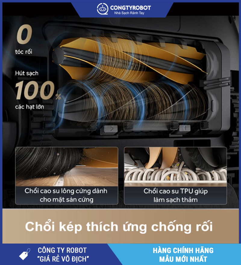 Một trong những “nỗi khổ” lớn nhất khi dùng robot hút bụi là tóc dài/lông thú quấn vào chổi, khiến lực hút giảm và phải vệ sinh thủ công thường xuyên. Dreame Aqua 10 Roller hướng đến xử lý bài toán này bằng bộ đôi bàn chải cao cấp tối ưu cho việc gom tóc và giảm rối.